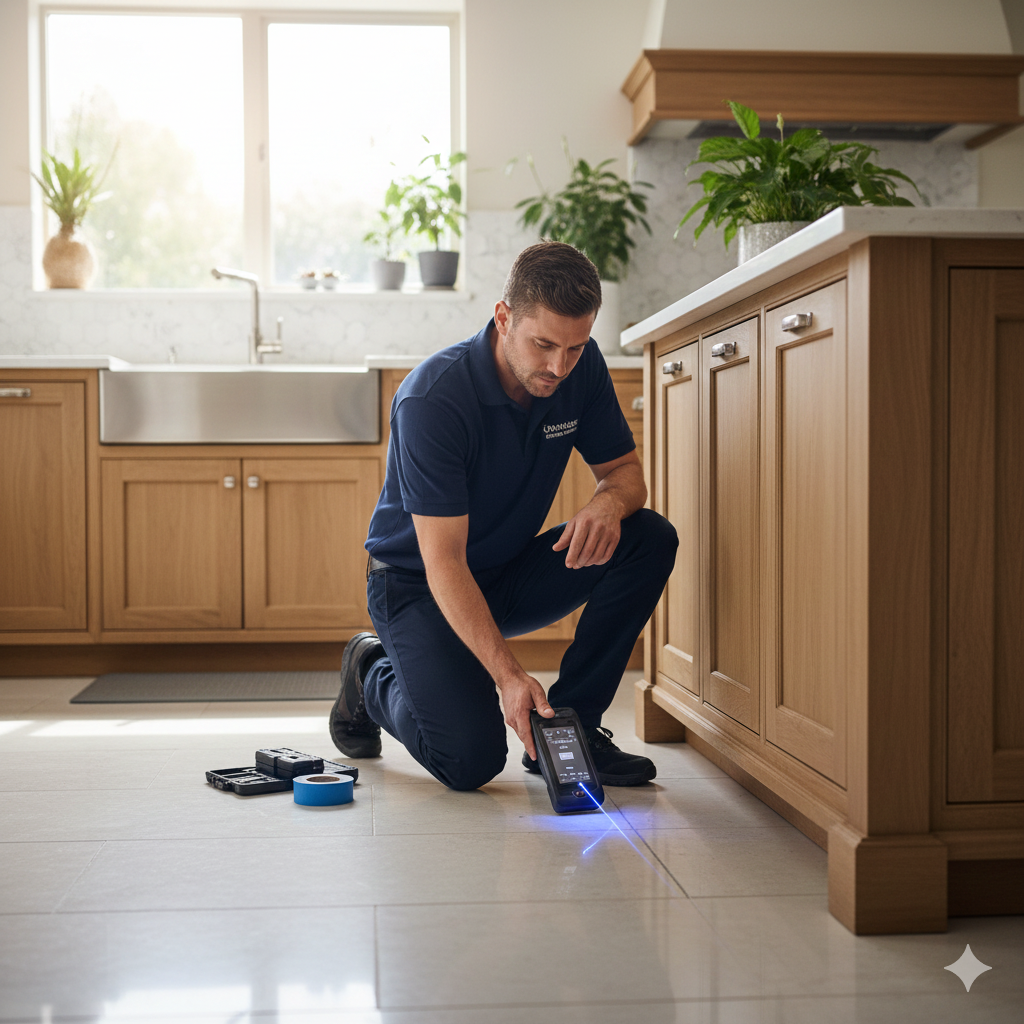 نحن لا نعتمد على التخمين بل نستخدم تكنولوجيا الموجات الصوتية والكاميرات الحرارية لرؤية ما خلف الجدران ننحدد مكان التسريب بدقة (المليمتر) لنحميك من فوضى التكسير العشوائي وتكاليف الإصلاح الباهظة